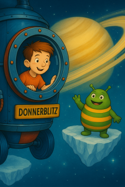 Mit seinem Raumschiff Donnerblitz fliegt er zu den Ringen des Saturn, begegnet gefährlichen Kometen und entdeckt auf dem Neptun, dass selbst Lichtwesen Freunde brauchen, um zu leuchten.
